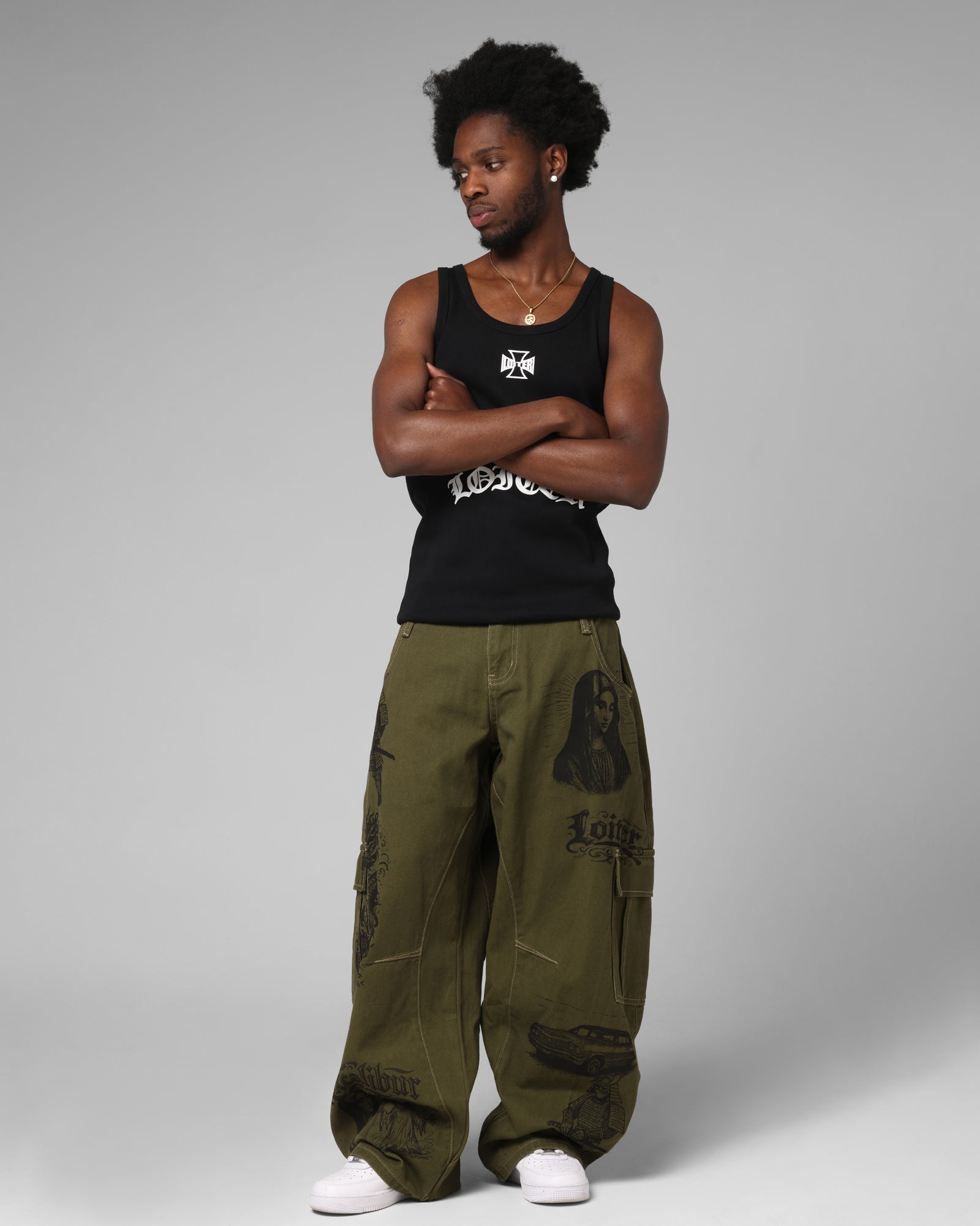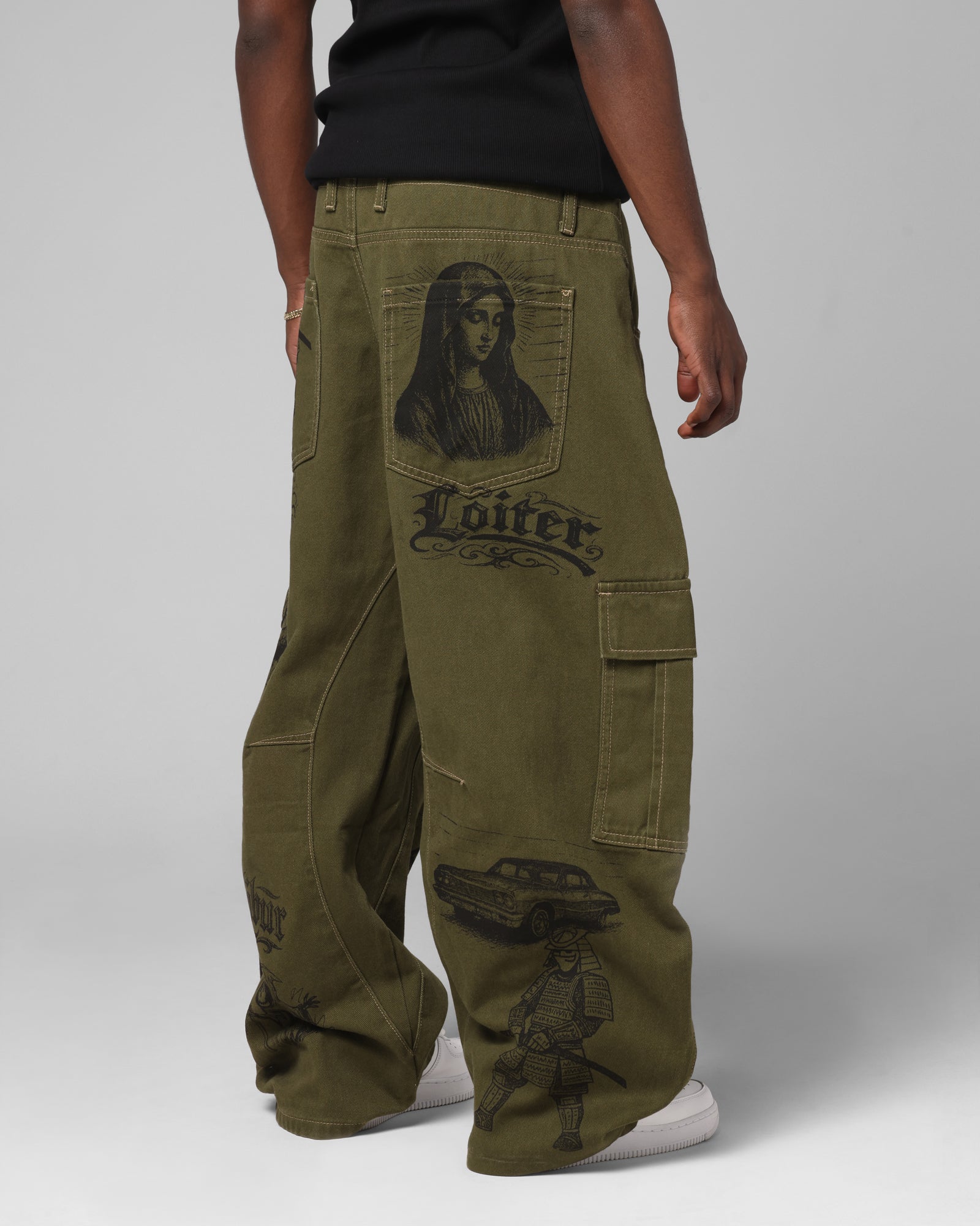 Elevate your jeans game with the Layered Holy Fire Cargo Pants by Loiter. These jeans feature printed graphics to showcase the brand you love with the iconic star across the pockets. With contrast stitching and a double-layered look at the waist paired with an ultra baggy fit, that brings back the early 2000's look. Get a look that is out of this world and cop yours today at Culture Kings.